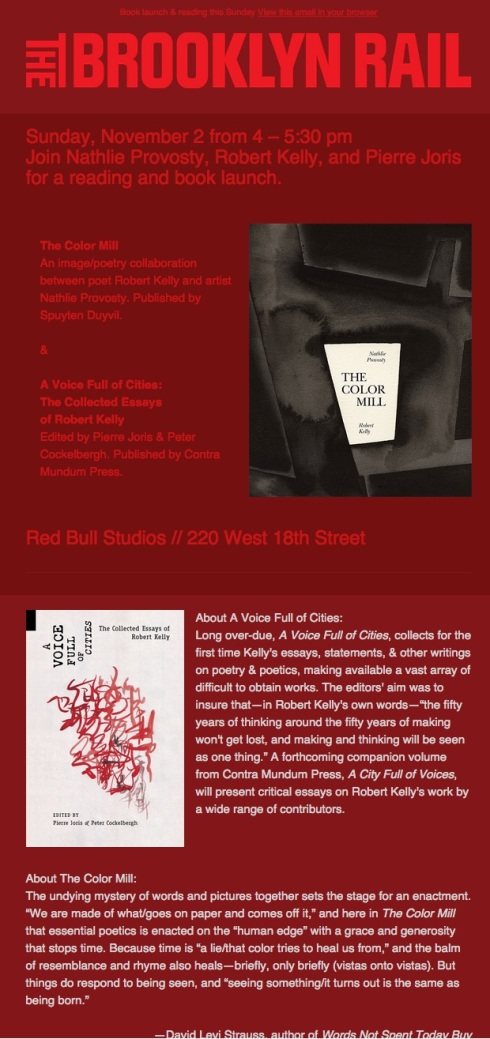 Today: Robert Kelly Reading (Visited 29 times, 1 visits today)Share this:Click to share on Twitter (Opens in new window)Click to share on Facebook (Opens in new window)Click to share on LinkedIn (Opens in new window) Comment on “Today: Robert Kelly Reading” I really do miss all the good stuff. Tell Kelly I am enjoying my copy of The Alchemist to Mercury which arrived awhile back. Still waiting for Barzakh. Enjoy!!! Reply Leave a Reply Cancel replyYour email address will not be published. Required fields are marked *Comment Name * Email * Website Notify me of follow-up comments by email. Notify me of new posts by email. Post navigation 60 Years Ago, AlgeriaCelebrate Naropa Today!