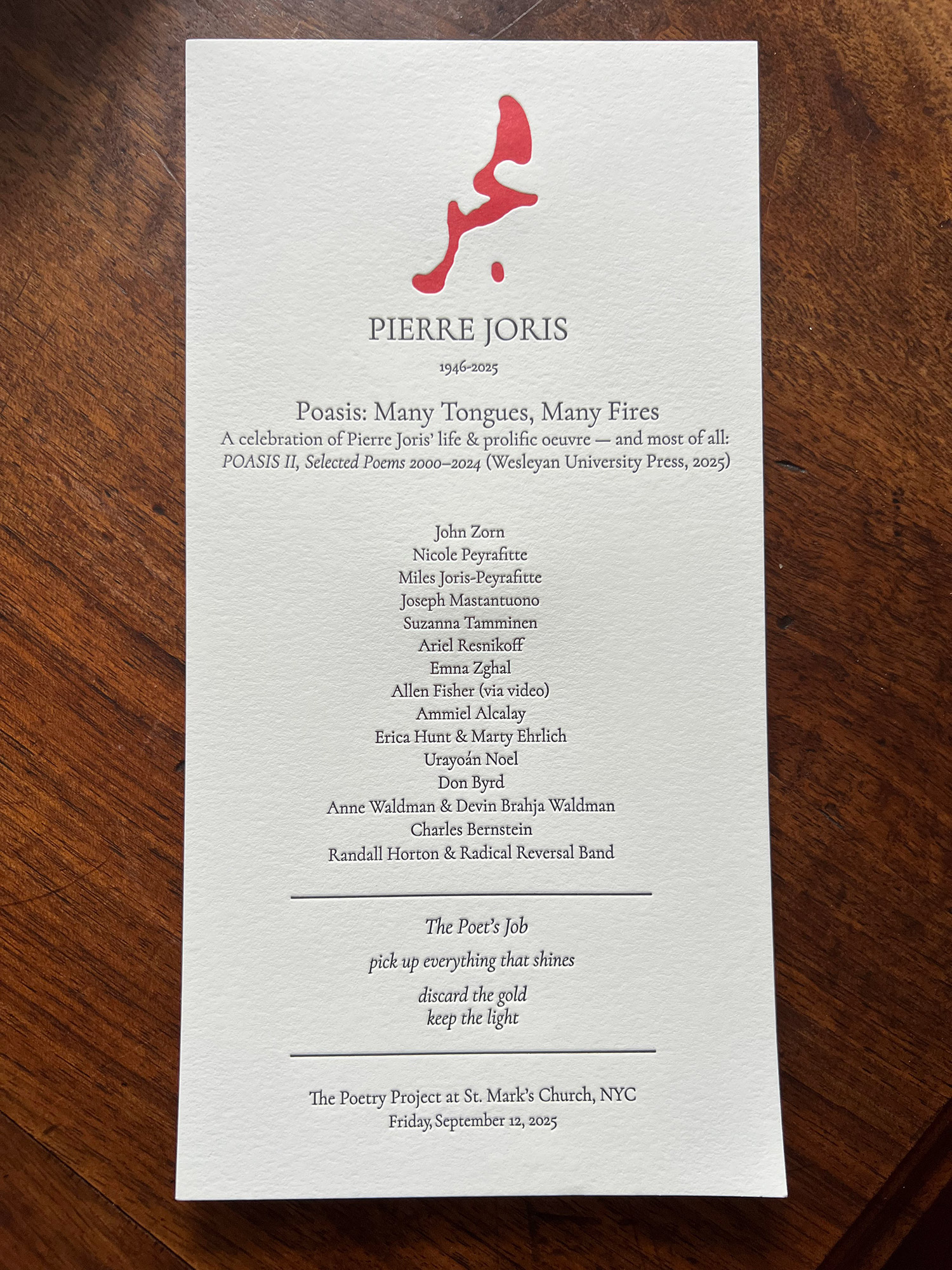 St Marks Poetry Project, 131 E. 10th Street, New York, NY 10003